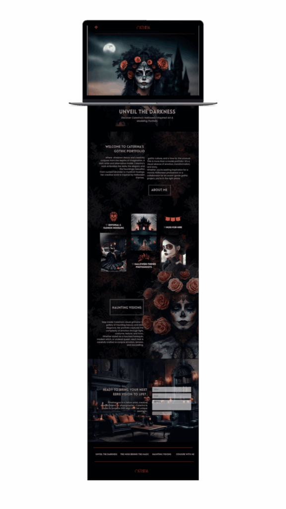 Introducing the “Catrina” Template—the High-Contrast, SEO-Optimized Design for Alternative Models, Dark Artists, and Halloween Creatives.