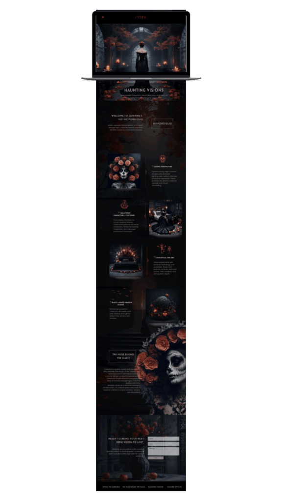 The “Catrina” Template is engineered to be as unique and unforgettable as your art. Built specifically around the powerful branding of the gothic, alternative, and Halloween aesthetic, this template provides the perfect visual foundation for your most haunting work.